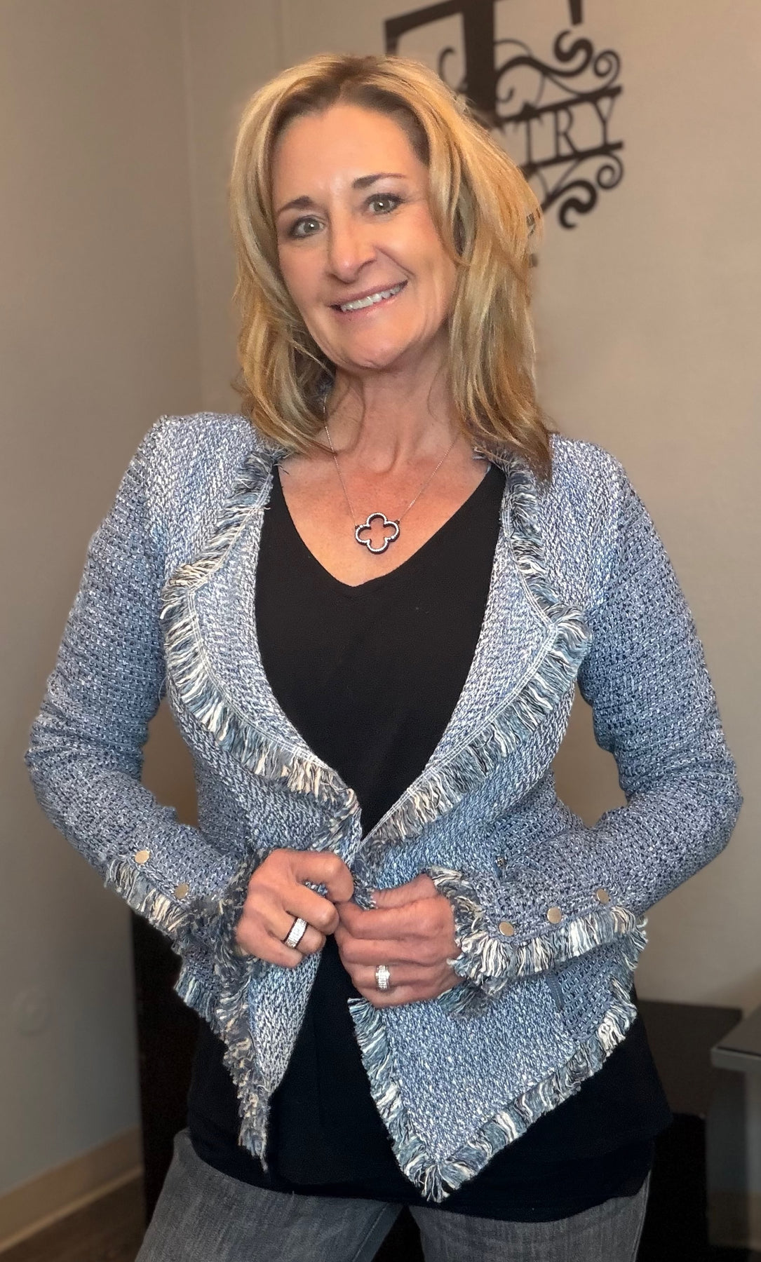 Transform your outerwear collection with this deconstructed knit tweed jacket—where contemporary design meets enduring style. Combining luxe tweed with supple knit elements, this piece breaks traditional tailoring rules to create something distinctly modern and effortlessly chic. The asymmetrical construction and mixed textures add depth and personality to every outfit, while the relaxed fit ensures comfort without sacrificing sophistication. Layer it over anything from silk blouses to casual tees and watch it become your go-to jacket for season after season. Size is fitted