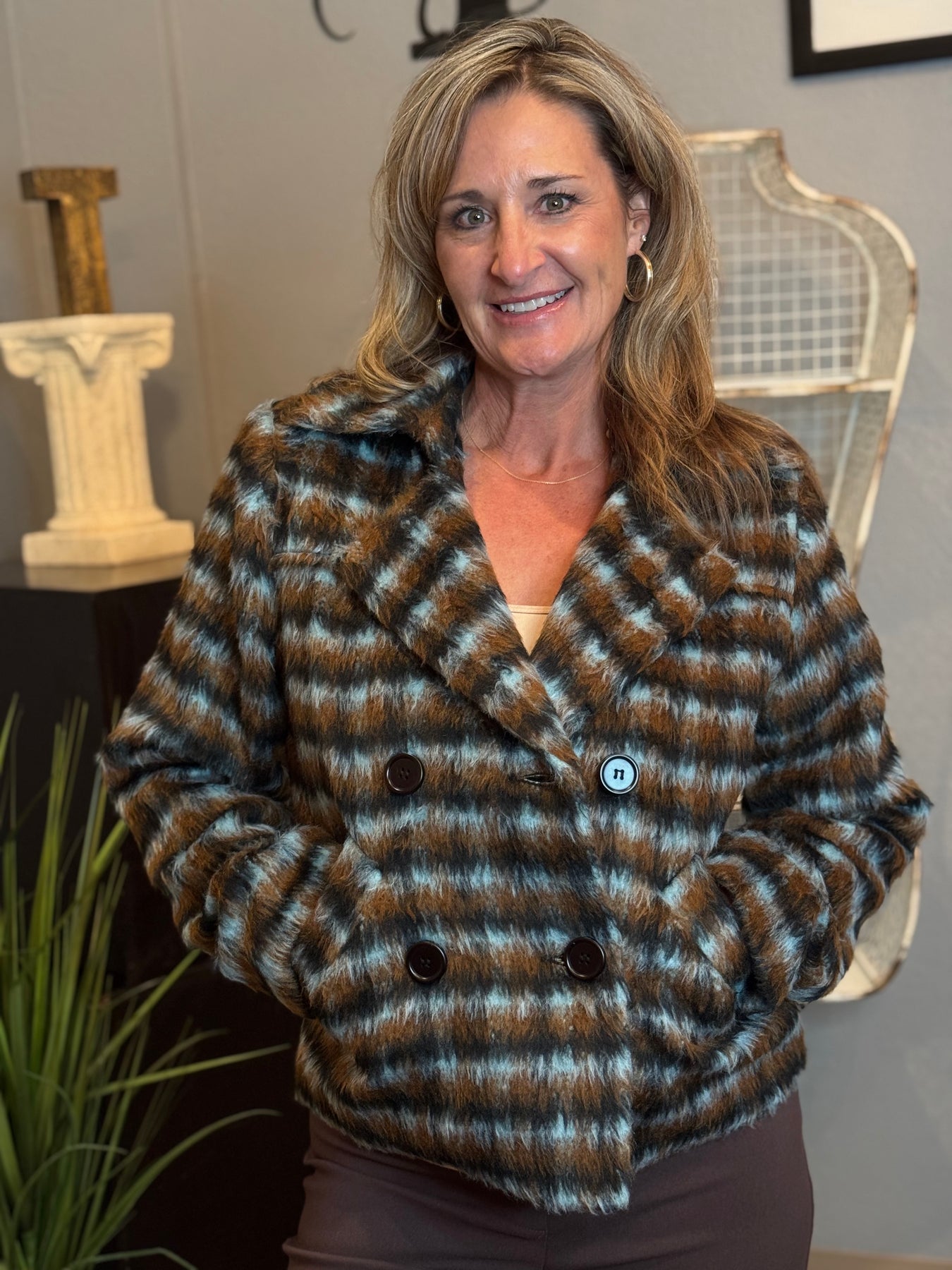 This plaid woven coat combines classic sophistication with modern tailoring, offering a polished look that enhances any ensemble. Crafted for warmth and style, it is an ideal choice for those seeking timeless elegance in their outerwear.